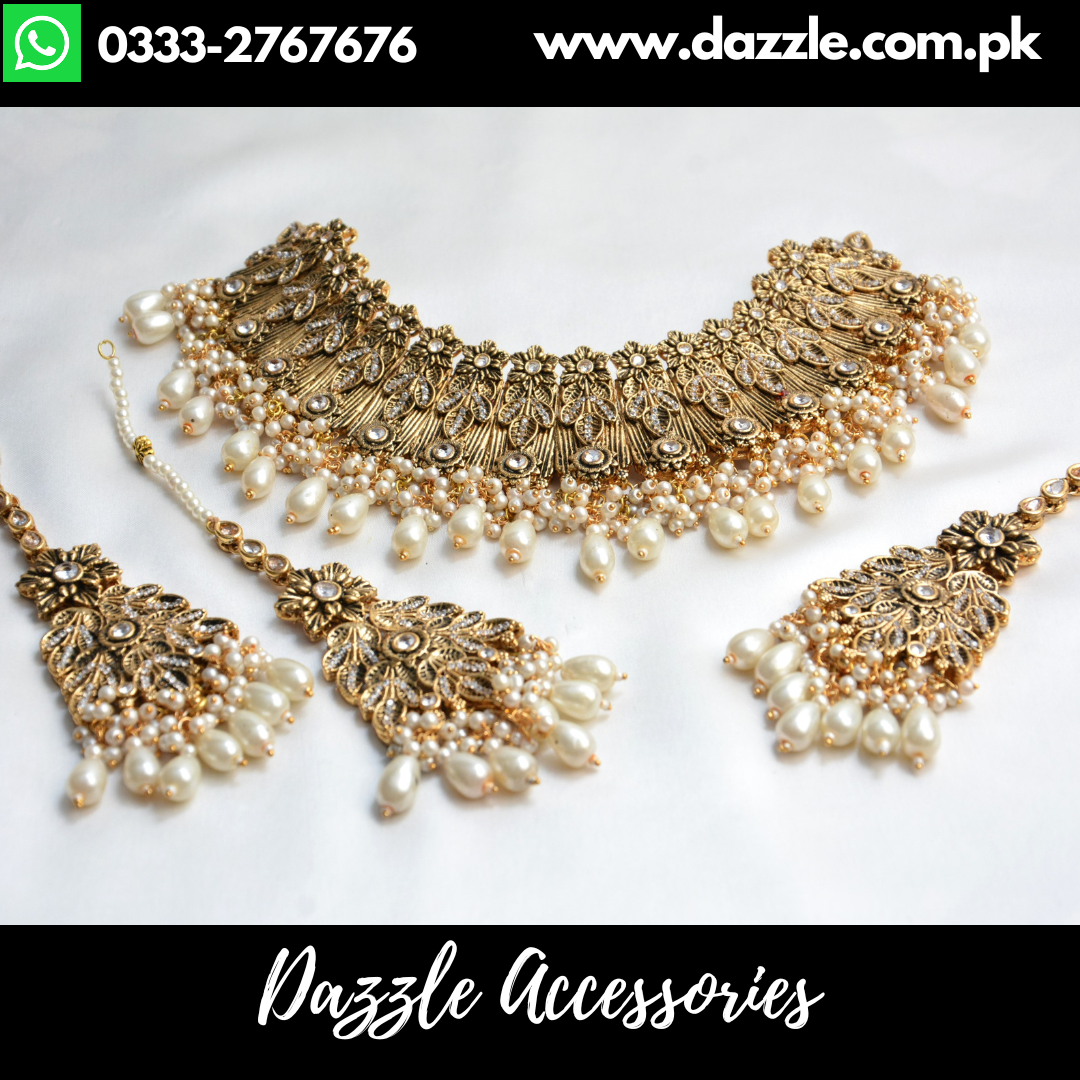 Antique Pearl Bridal Jewelry Set for Wedding a breathtaking blend of modern sophistication and timeless elegance. Designed for today’s bride, this luxurious set features intricate craftsmanship, high-quality gold plating, and brilliant zirconia stones that radiate unmatched sparkle under every light.