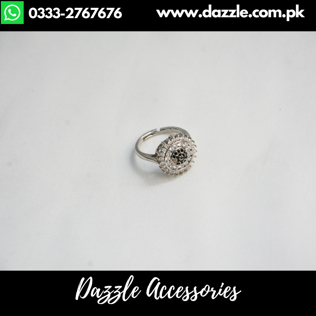 Black Silver Adjustable Ladies Ring