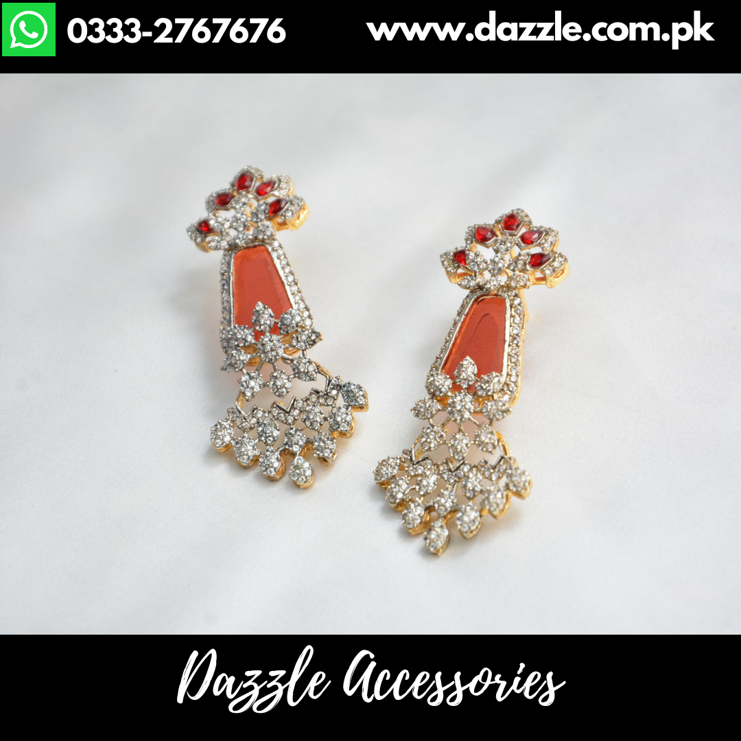 Dazzling Rust Earrings crafted to perfection with high-shine red stones and sparkling zirconia crystals. Their lightweight design and luxurious finish make them the perfect statement accessory for weddings, parties, and special occasions. Add an instant touch of elegance and glamour to any outfit with these dazzling beauties.