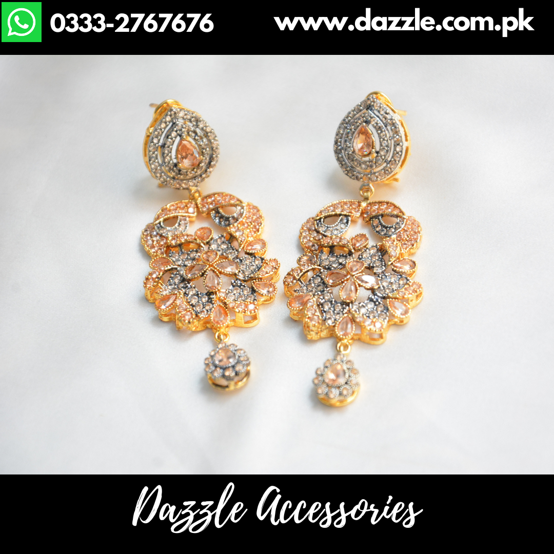 Fancy champagne zirconia earrings crafted to perfection with high-shine red stones and sparkling zirconia crystals. Their lightweight design and luxurious finish make them the perfect statement accessory for weddings, parties, and special occasions. Add an instant touch of elegance and glamour to any outfit with these dazzling beauties.