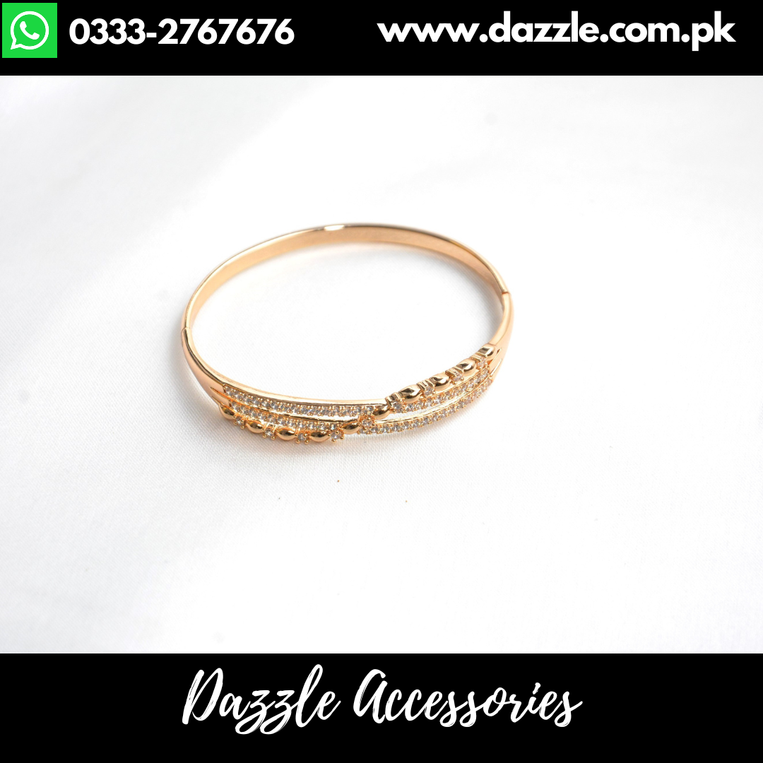 Gold Plated Openable Bangle Bracelet features a modern, elegant design crafted with high-quality materials that blend everyday comfort with timeless style. Its sleek finish, delicate detailing, and refined craftsmanship make it a standout accessory for both casual and formal looks. Designed with an adjustable fit, the bracelet sits gracefully on the wrist, adding a touch of sparkle without feeling heavy.