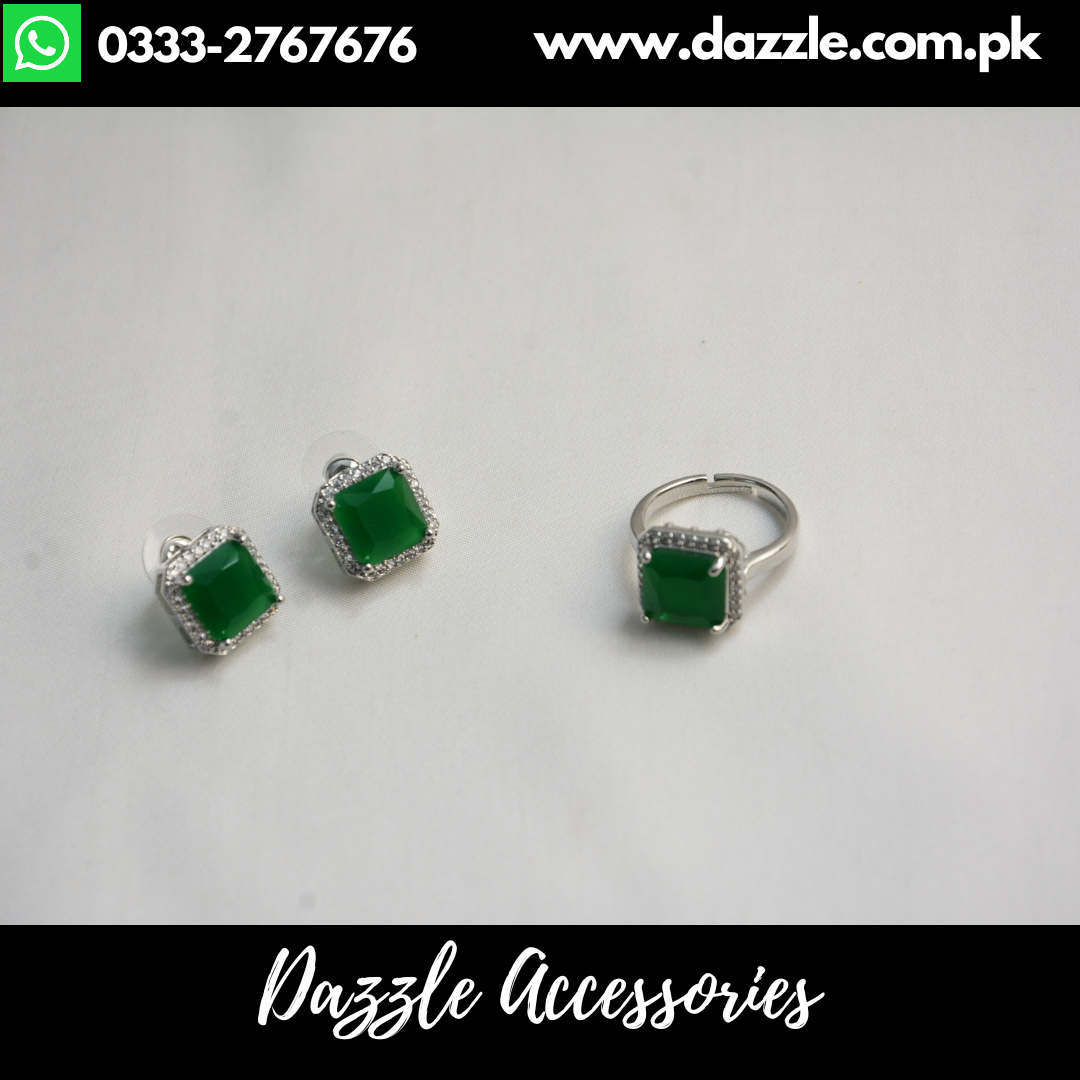 Green Decent Stud Earrings with Adjustable Ring