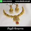 Indian Classy Ruby Green Set, a masterpiece that embodies timeless luxury and brilliance. Adorned with finely cut zirconia stones and finished in rich gold plating, this set radiates sophistication from every angle. Perfect for weddings, festive occasions, and grand celebrations, it brings out the inner queen in every woman. The intricate craftsmanship and luxurious detailing make it an exquisite statement piece that enhances both traditional and modern outfits. Designed for elegance, comfort, and shine — this Mahraani set is a true reflection of royal beauty and grace.
