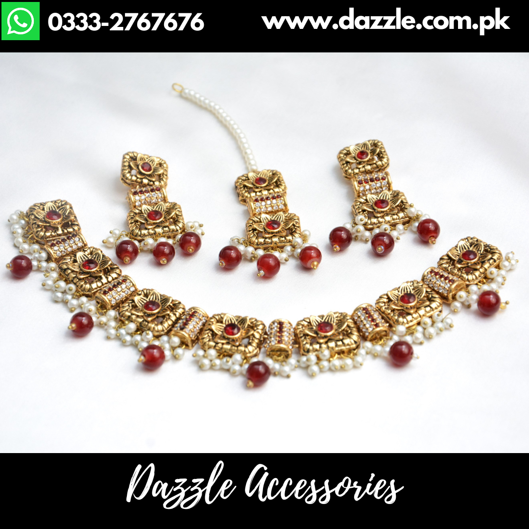 Maroon Antique Choker Set women love a perfect blend of elegance and trend. Crafted with premium-quality materials, this necklace set features a beautifully detailed design that adds instant charm to any outfit. Its lightweight feel and sparkling finish make it ideal for weddings, parties, festive events