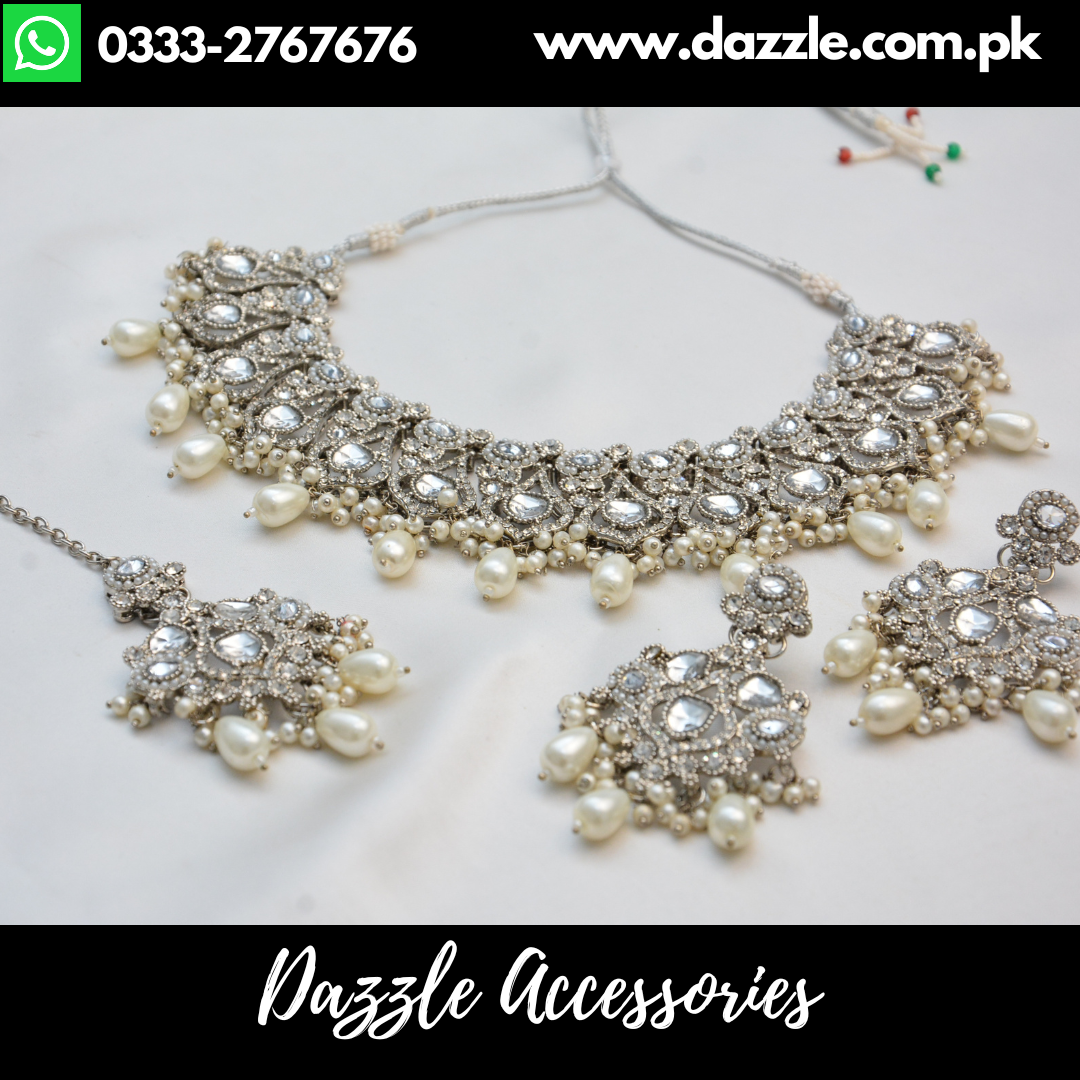 Be the first to review “Pearl Silver Kundan Bridal Set” Cancel reply