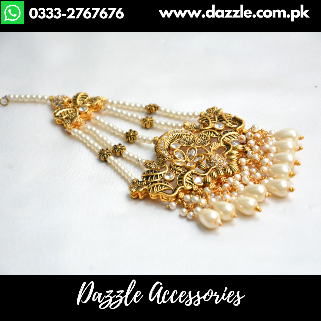 Pearl Statement Antique Jhoomar brides, mehndi events, and traditional celebrations, its lightweight structure ensures comfortable wear throughout the function. Each element is carefully handcrafted to give you a luxurious accessory that elevates your entire look with grace and sophistication.