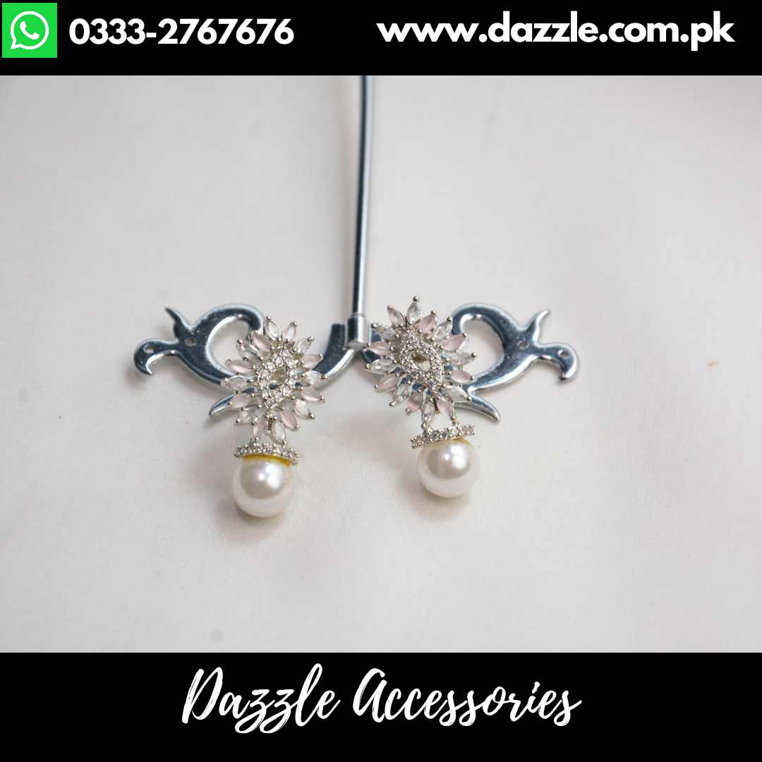Pink Silver Pearl Tops Earrings