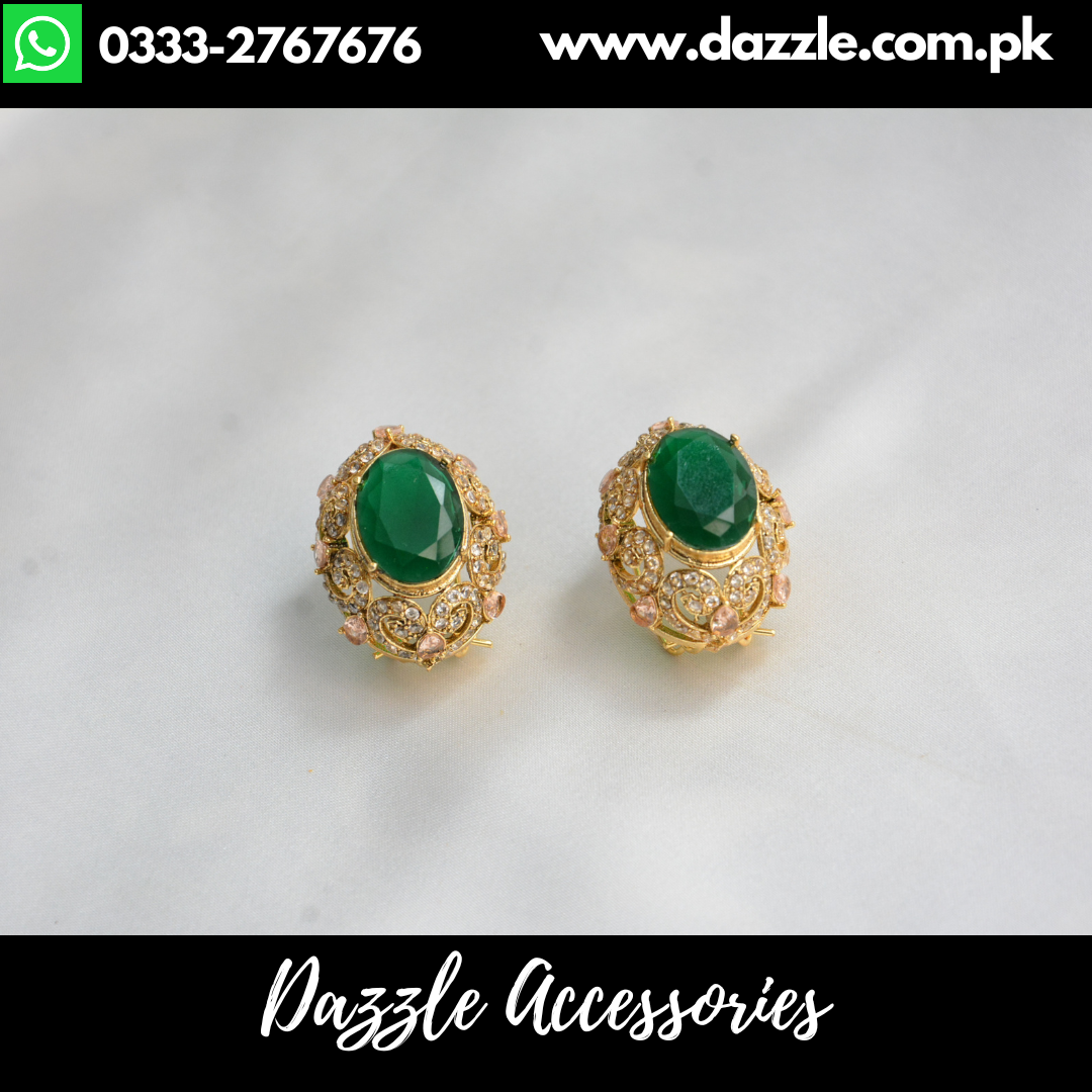 Radiant Green Gem Studs crafted to perfection with high-shine red stones and sparkling zirconia crystals. Their lightweight design and luxurious finish make them the perfect statement accessory for weddings, parties, and special occasions. Add an instant touch of elegance and glamour to any outfit with these dazzling beauties.
