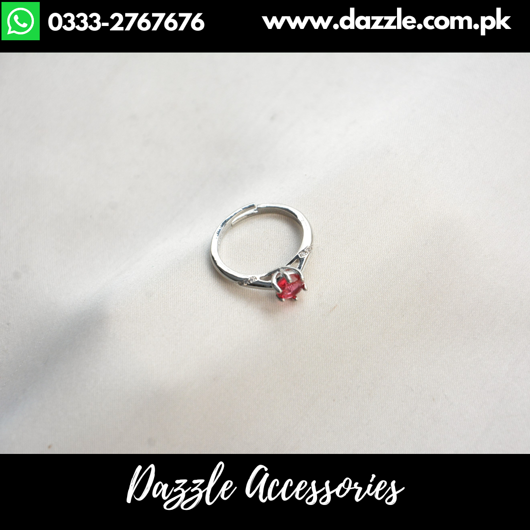 Red One Stone Silver Plated Girls Ring Adjustable Size