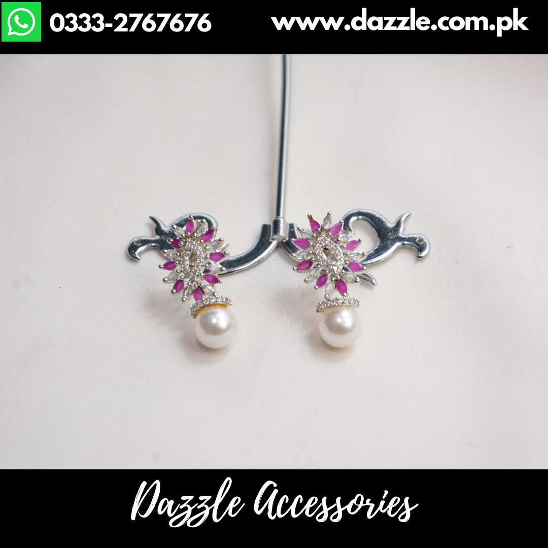 Ruby Silver Pearl Tops Earrings