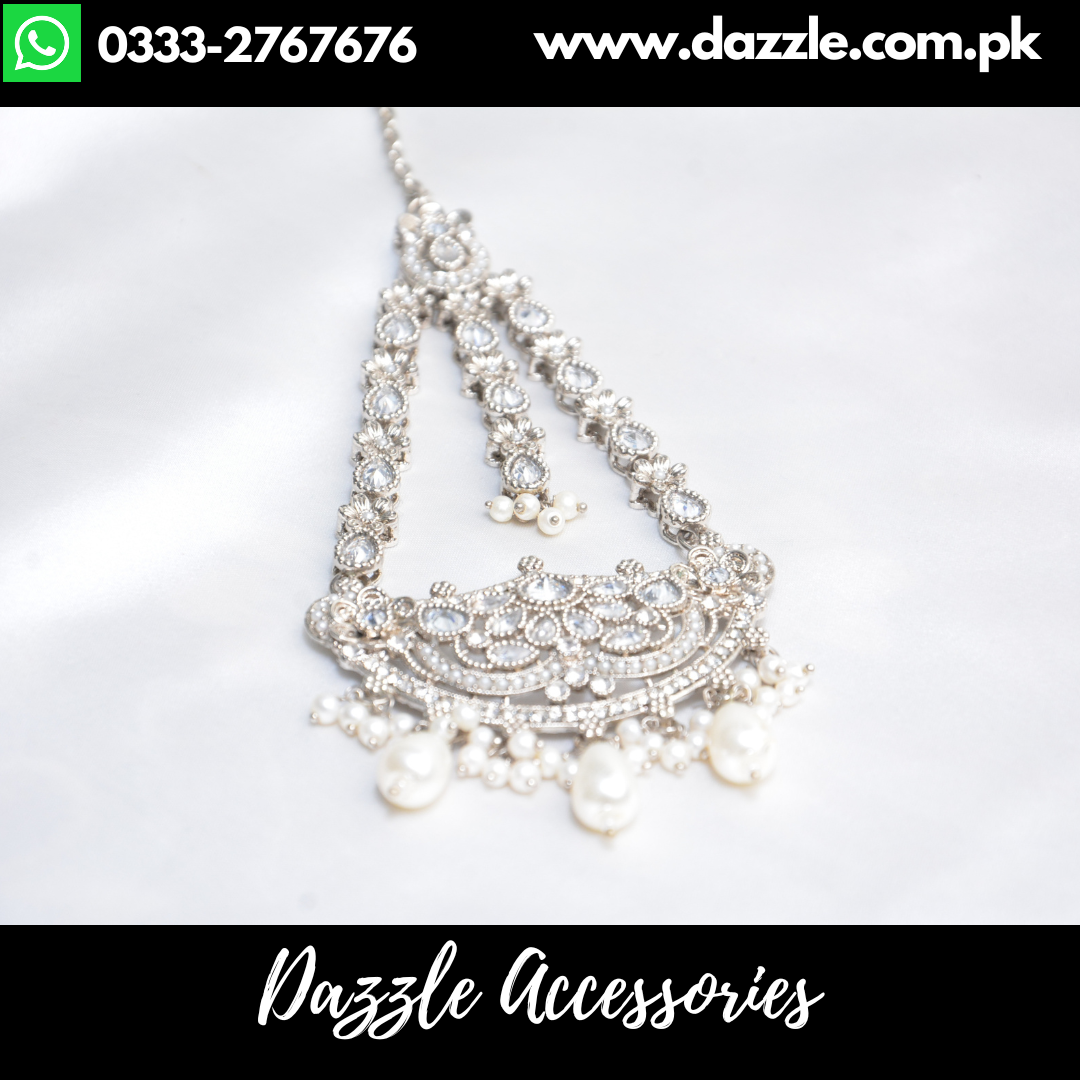 Silver Bridal Jhoomar designed to bring classic charm to modern bridal and festive styling. Crafted with intricate detailing and shimmering stones, it drapes gracefully along the side of the face, giving a royal and radiant appearance.