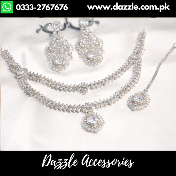 Silver Double Layer Small Bridal Set , a masterpiece of elegance and sophistication. Crafted with premium 18K gold plating, this choker set shines with brilliant zirconia stones and authentic handcrafted stonework, making it a perfect choice for modern brides who love a blend of tradition and glamour.